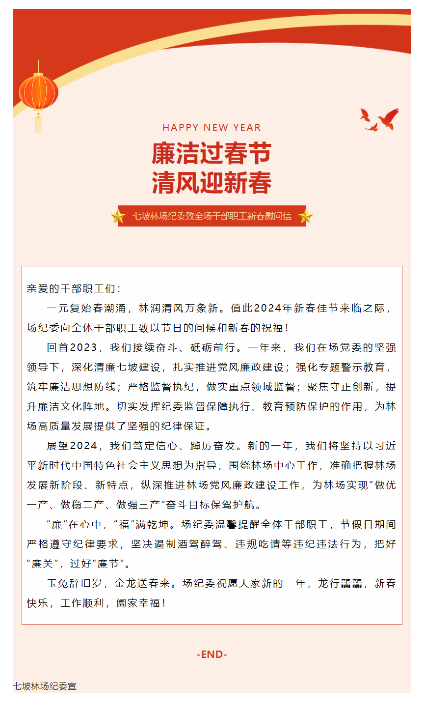 清廉七坡 | 廉洁过春节 清风迎新春——七坡林场纪委致全场干部职工新春慰问信