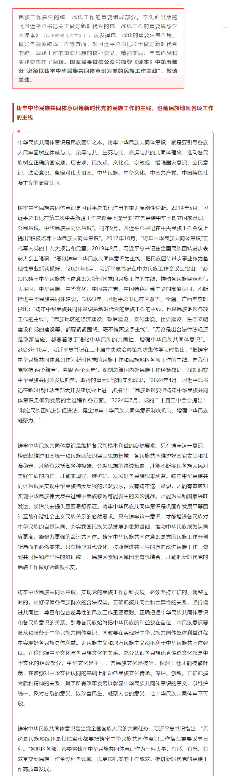 铸牢中华民族共同体意识是新时代党的民族工作的主线,也是民族地区各项工作的主线 | 学习读本