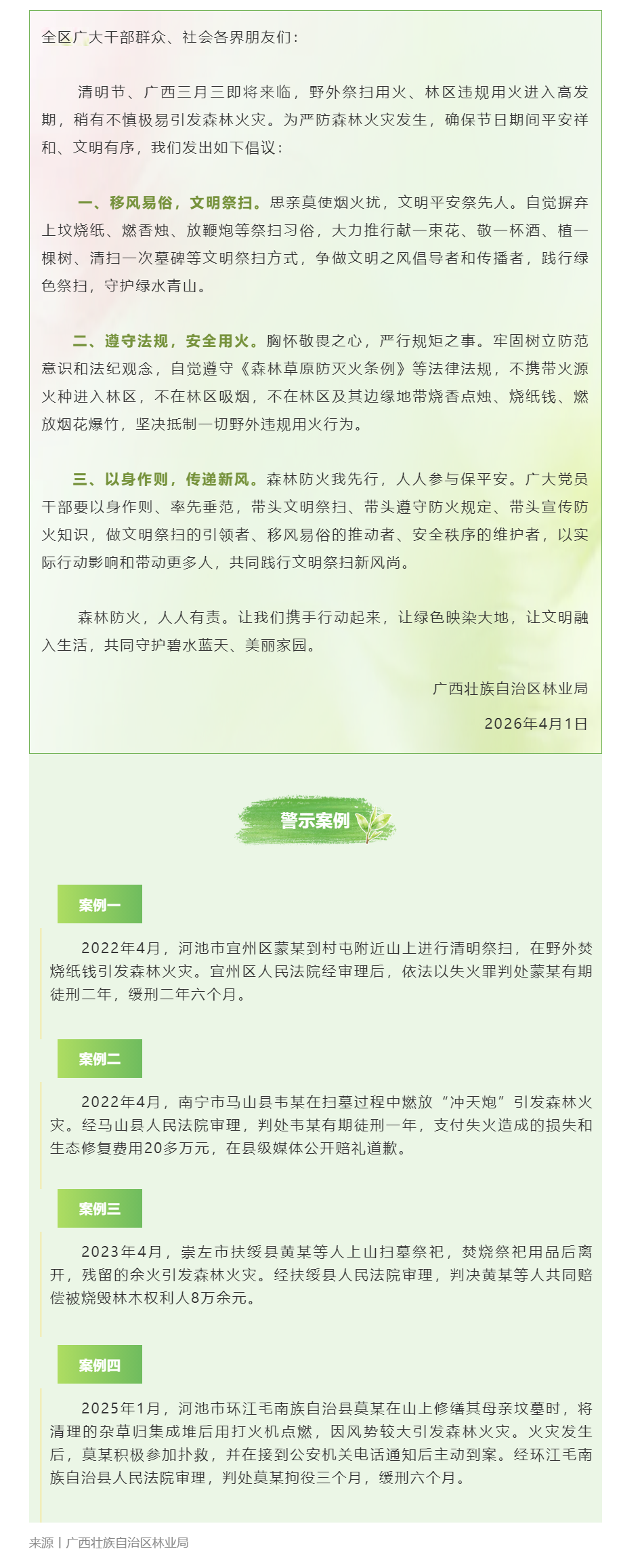 森林防火倡议书