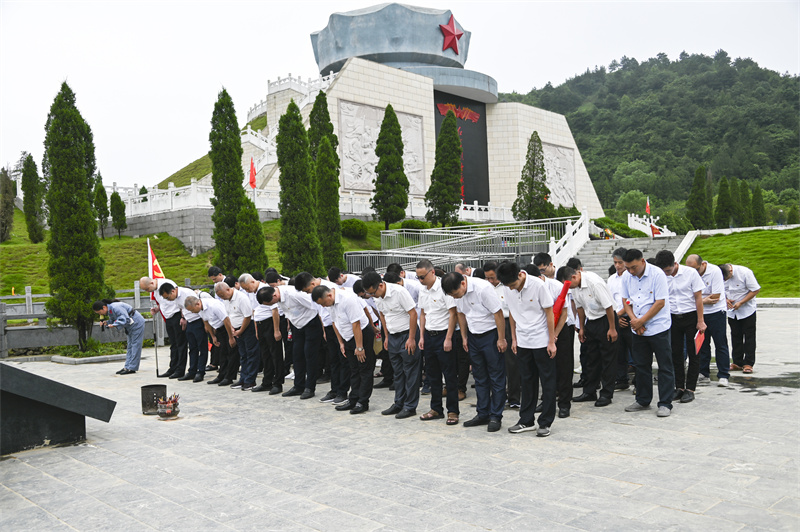 作为湘江战役的主战场之一新圩阻击战在灌阳打响,战斗期间,这里曾有百余名伤员落入敌人手中,并被残忍地活活投入到名为“酒海井”的地下河,全部壮烈牺牲。灌阳酒海井红军纪念园,厚重的石碑上,无数个平凡的名字,用他们的血与肉,共同书写了伟大的历史。我们在此缅怀先烈、向红军烈士敬献花篮、重温入党誓词,为5-6月份入党的同志送上政治生日贺卡,并开展“感党恩 跟党走”党史学习教育“党员心声大家谈”。我们铭记这一段历史、铭记这些年轻的红军英灵、铭记自己是一名共产党员。