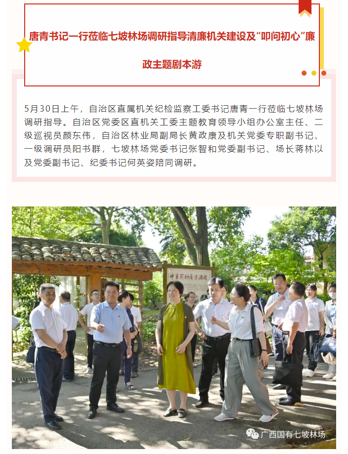 唐青书记一行莅临七坡林场调研指导清廉机关建设及“叩问初心”廉政主题剧本游