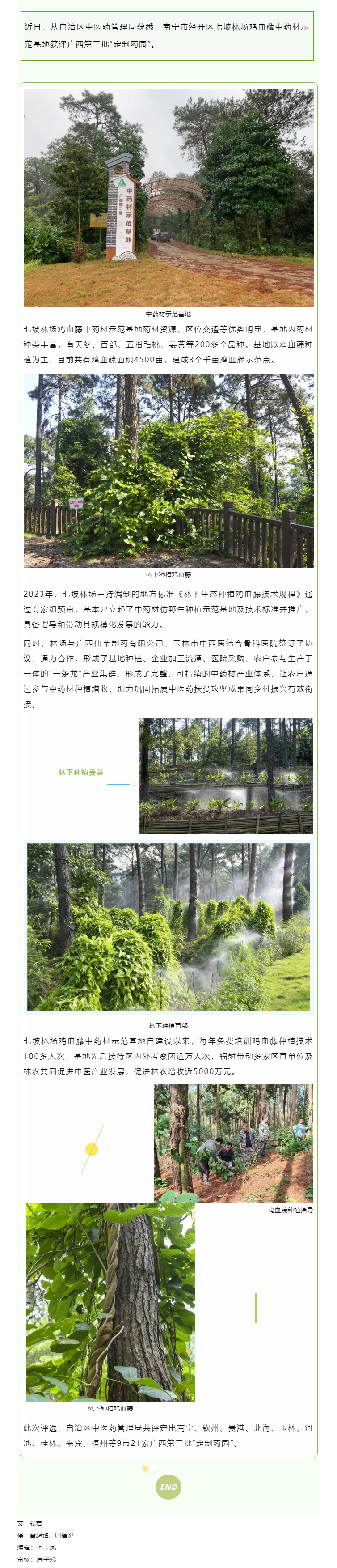 七坡林场鸡血藤中药材示范基地获评广西第三批“定制药园”