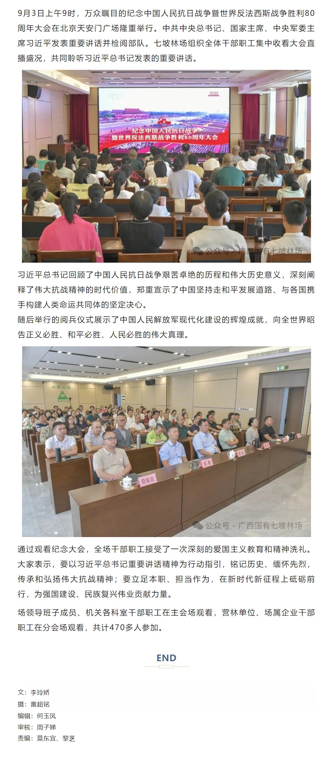 七坡林场组织集中收看纪念中国人民抗日战争暨世界反法西斯战争胜利80周年大会