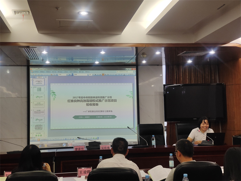 2021年7月22日,在自治区林业局组织召开的全区2020年到期中央财政林业科技推广示范项目验收会上,七坡林场承担的“红锥良种高效栽培模式推广示范”([2017]TG16)及“优良新品种大花序桉高效栽培技术集成示范”([2017]TG07)两个项目顺利通过专家评审验收。
