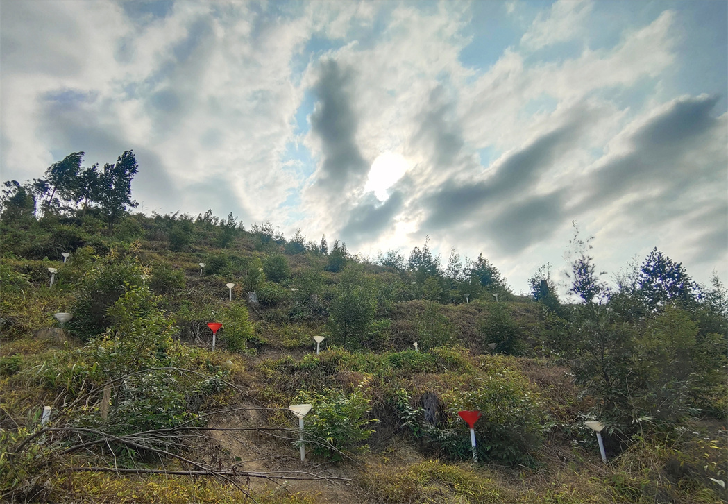 该三项成果分别是“一种简易集水装置”(ZL 202021498847.4)、“一种采集坡面地表水的固定装置”(ZL 202020787281.0)及“一种辅助施肥装置”(ZL 202021499217.9)。其中,一种简易集水装置和一种采集坡面地表水的固定装置主要用于开展雨水收集及地表水采集试验研究,通过雨水收集进而提高降雨利用效率,通过地表水采集分析林地水质情况,为后期林木生长提供科学数据支撑;一种辅助施肥装置则主要用于辅助林木施肥,为了进一步提高施肥效率,减少施肥成本,降低环境污染,最终实现促进林木生长。现该三项成果都已应用于林场营林试验。