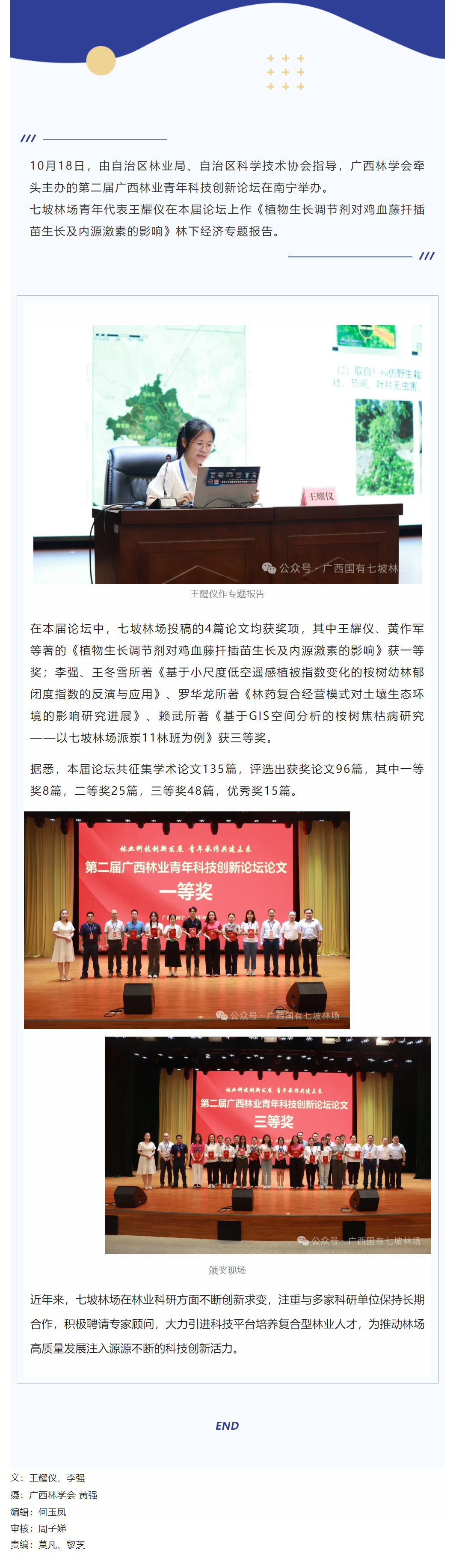 七坡林场四篇论文在第二届广西林业青年科技创新论坛中获奖