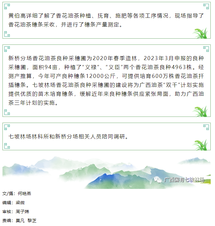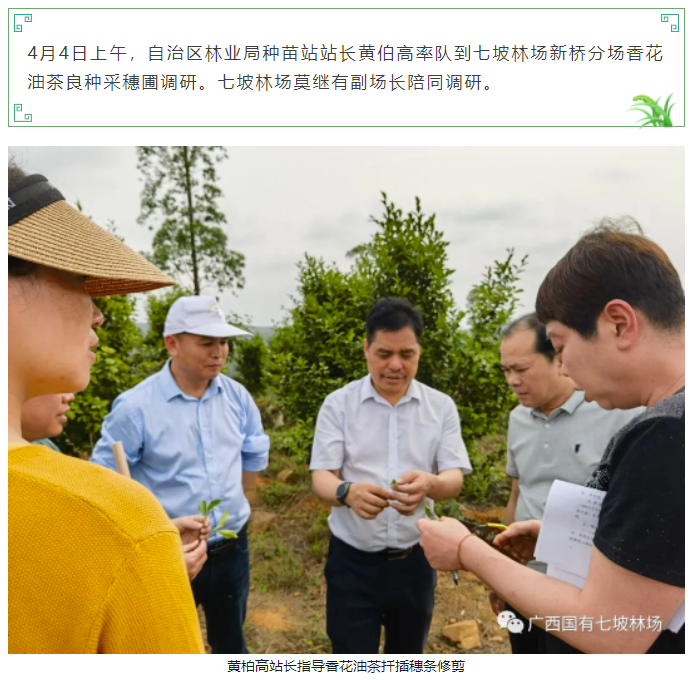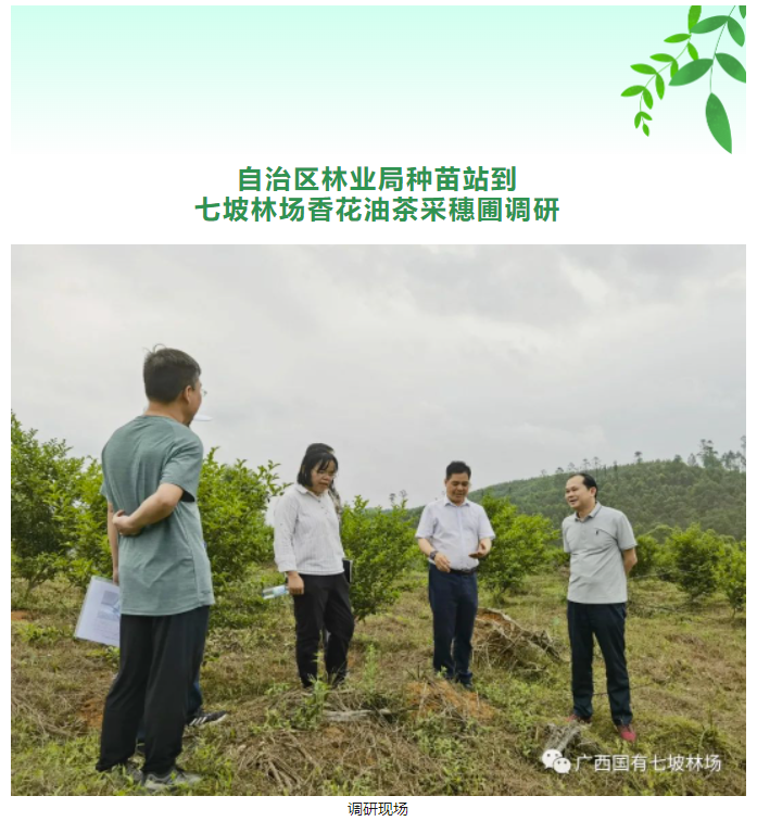 自治区林业局种苗站到七坡林场香花油茶采穗圃调研