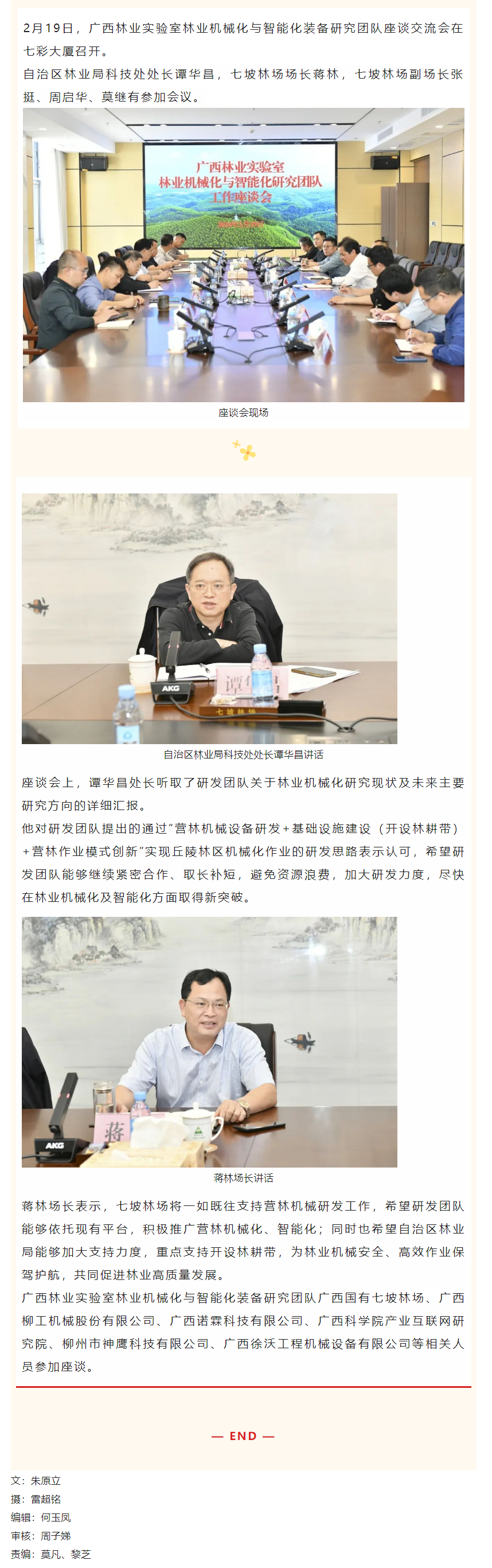广西林业实验室林业机械化与智能化装备研究团队召开座谈交流会