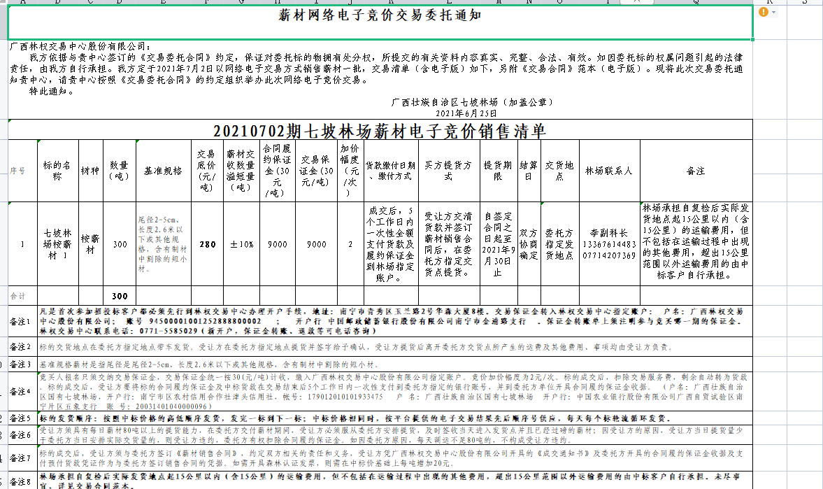 20210702期七坡林场薪柴交易销售电子清单(流标)