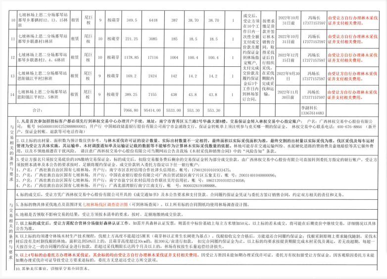 20220729期七坡林场活立木电子交易清单流标标的