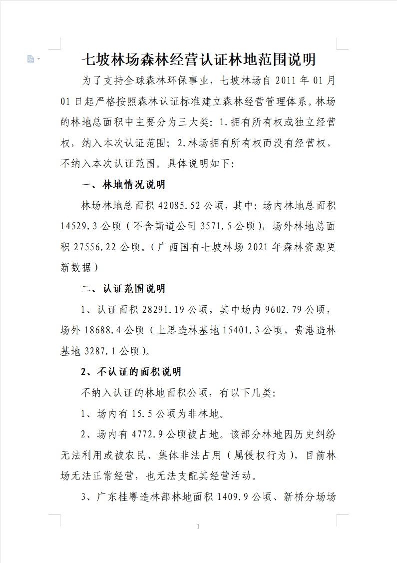 七坡林场2022年森林认证公示材料