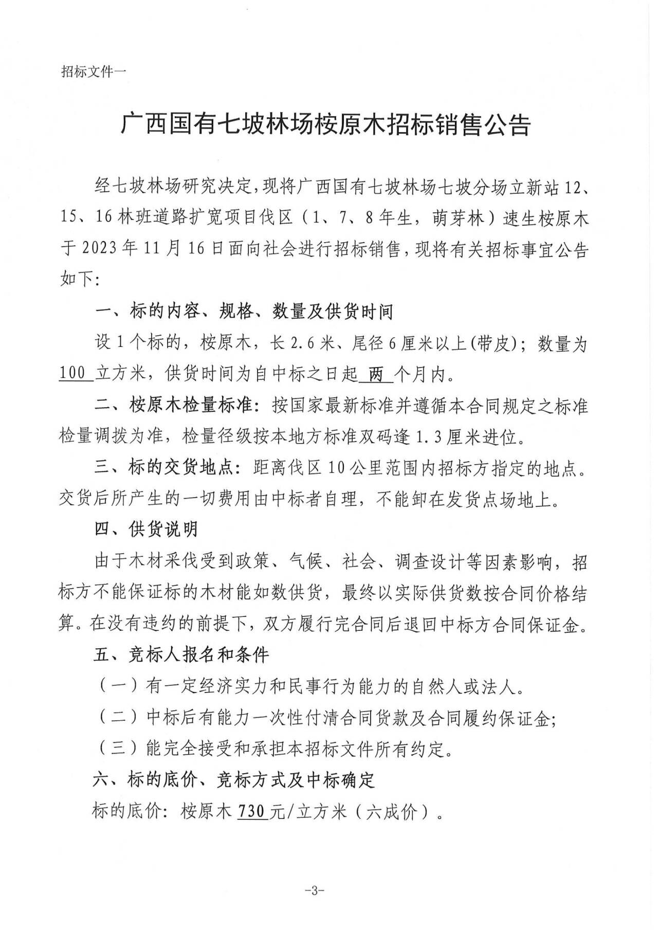 七坡林场立新站桉原木招标销售公告