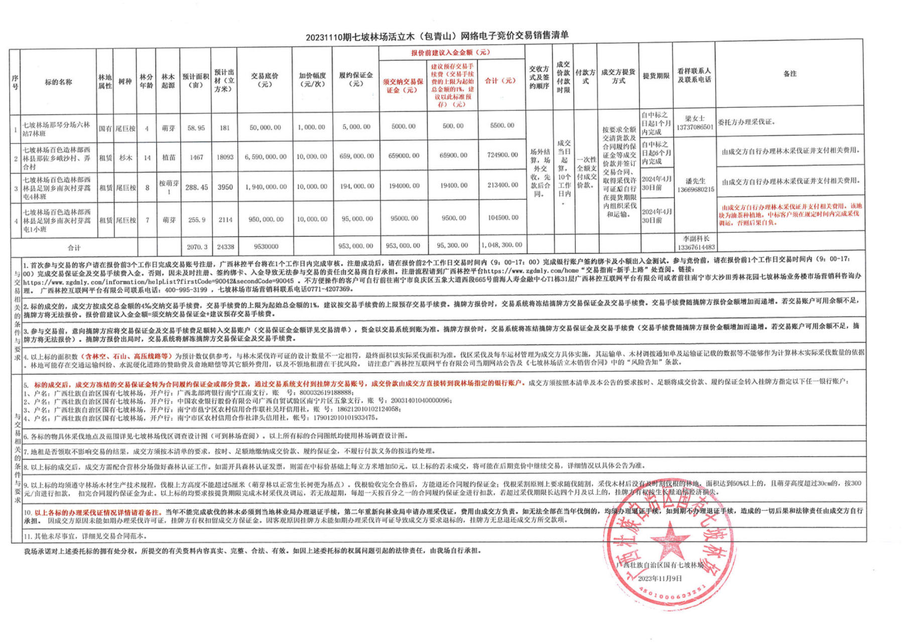 20231110期七坡林场活立木(包青山)网络电子竞价交易销售清单(流标)