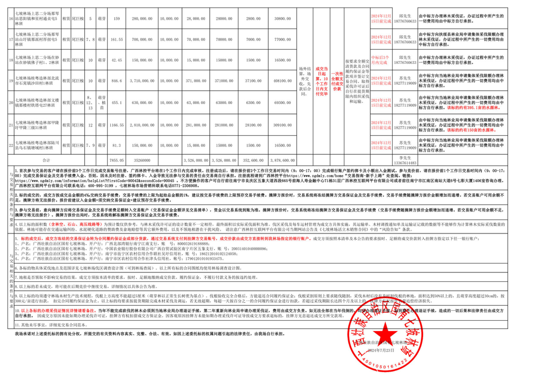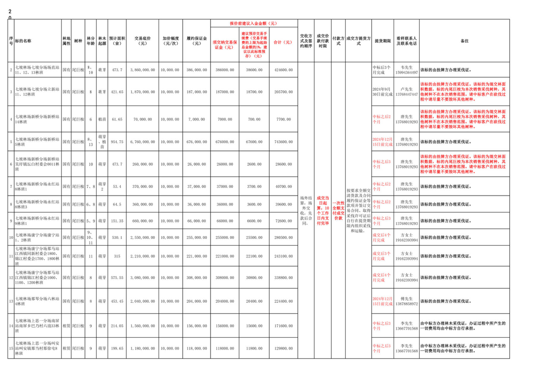 20240730期七坡林场活立木(包青山)网络电子竞价交易销售清单