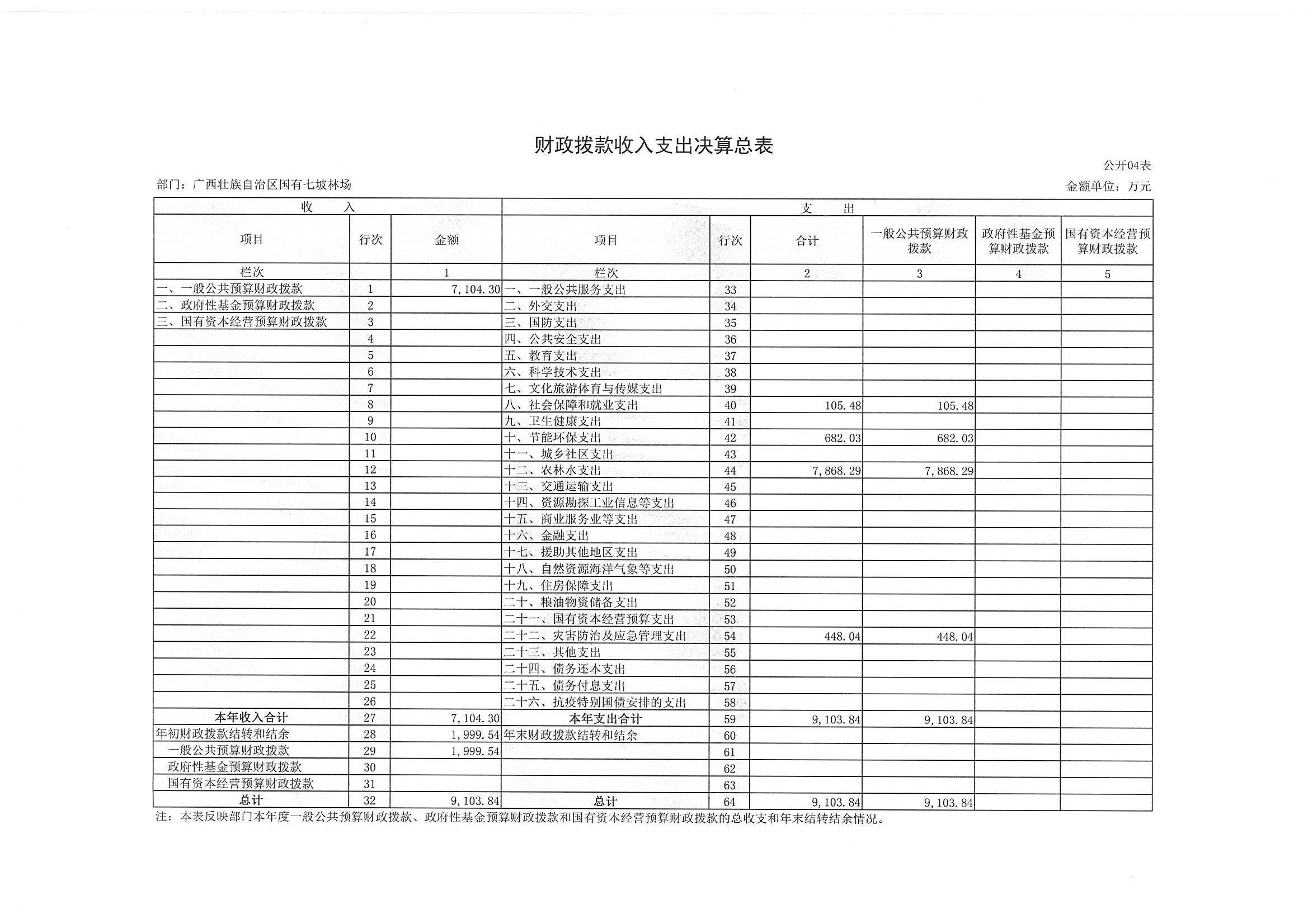 广西壮族自治区国有七坡林场2024年度部门决算