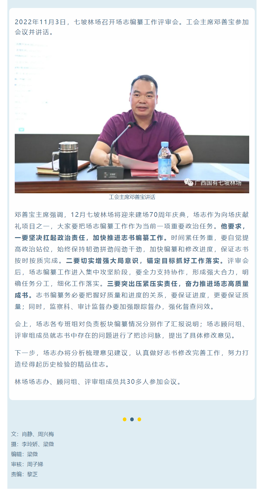 七坡林场召开场志编纂工作评审会