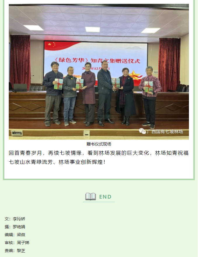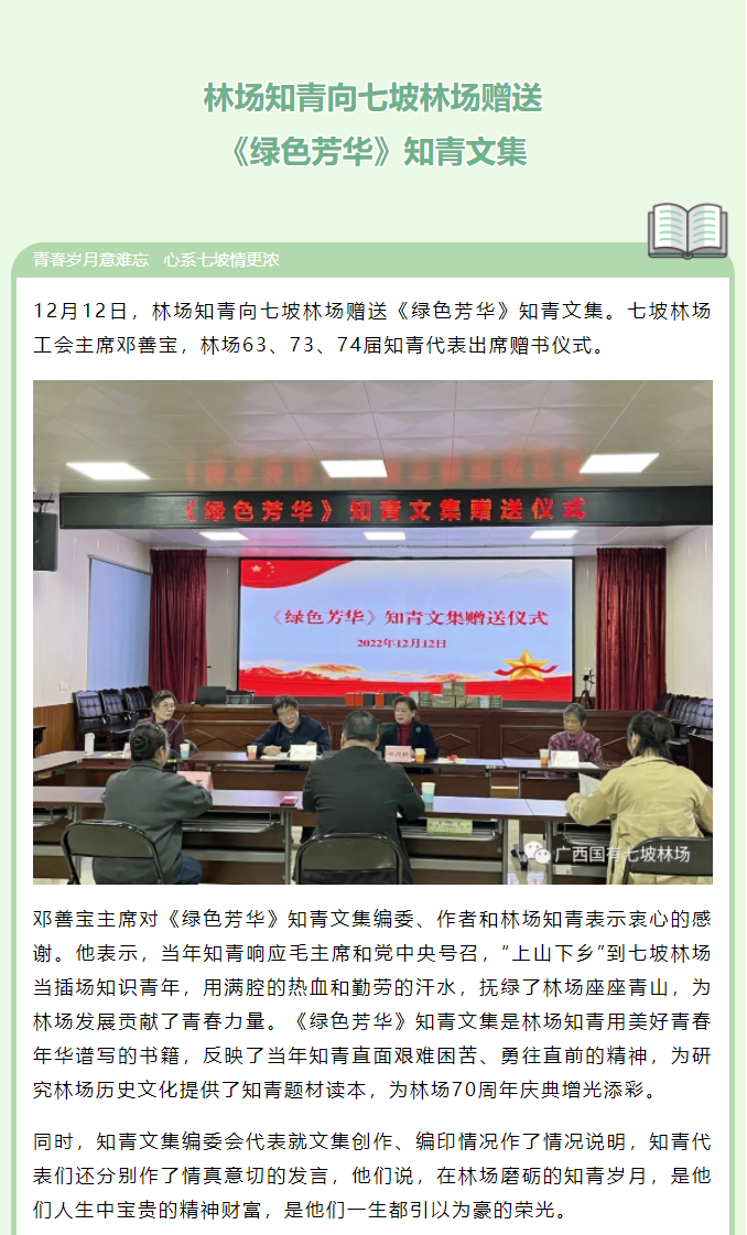 青春岁月意难忘 心系七坡情更浓 ——林场知青向七坡林场赠送《绿色芳华》知青文集
