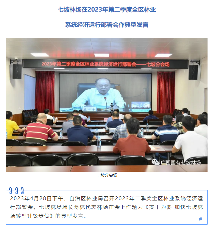 七坡林场在2023年第二季度全区林业系统经济运行部署会作典型发言