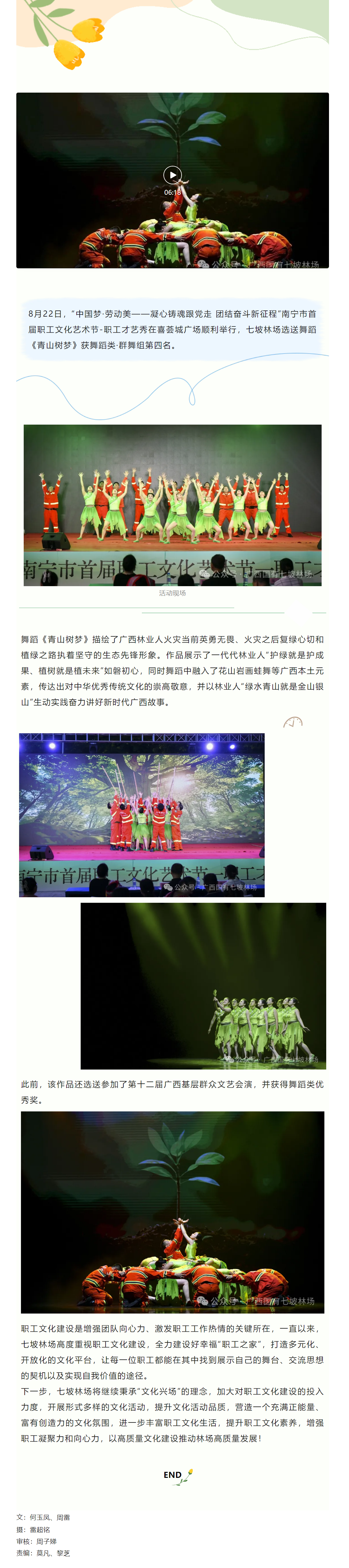 七坡林场舞蹈《青山树梦》获南宁市首届职工文化艺术节-职工才艺秀群舞第四名